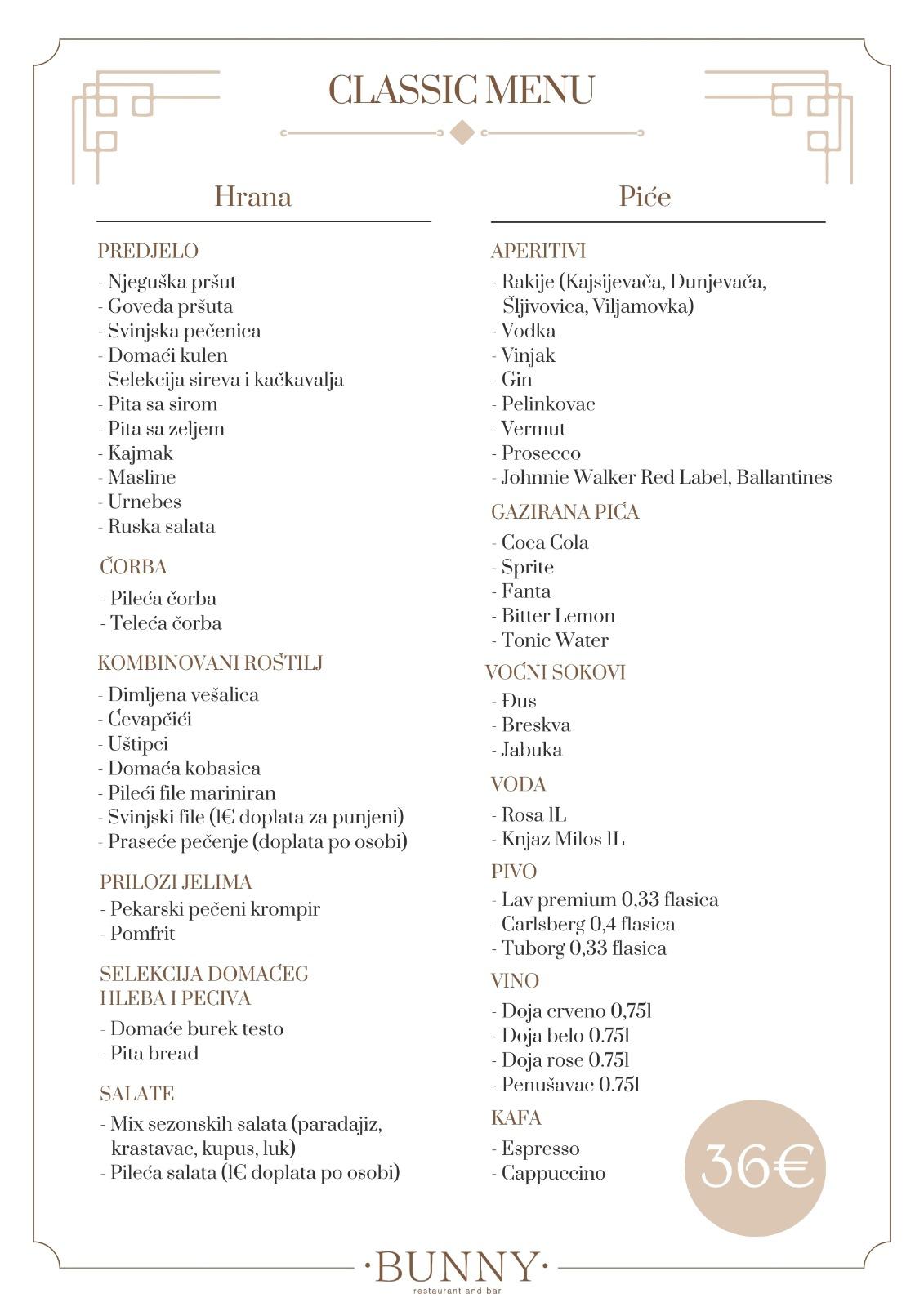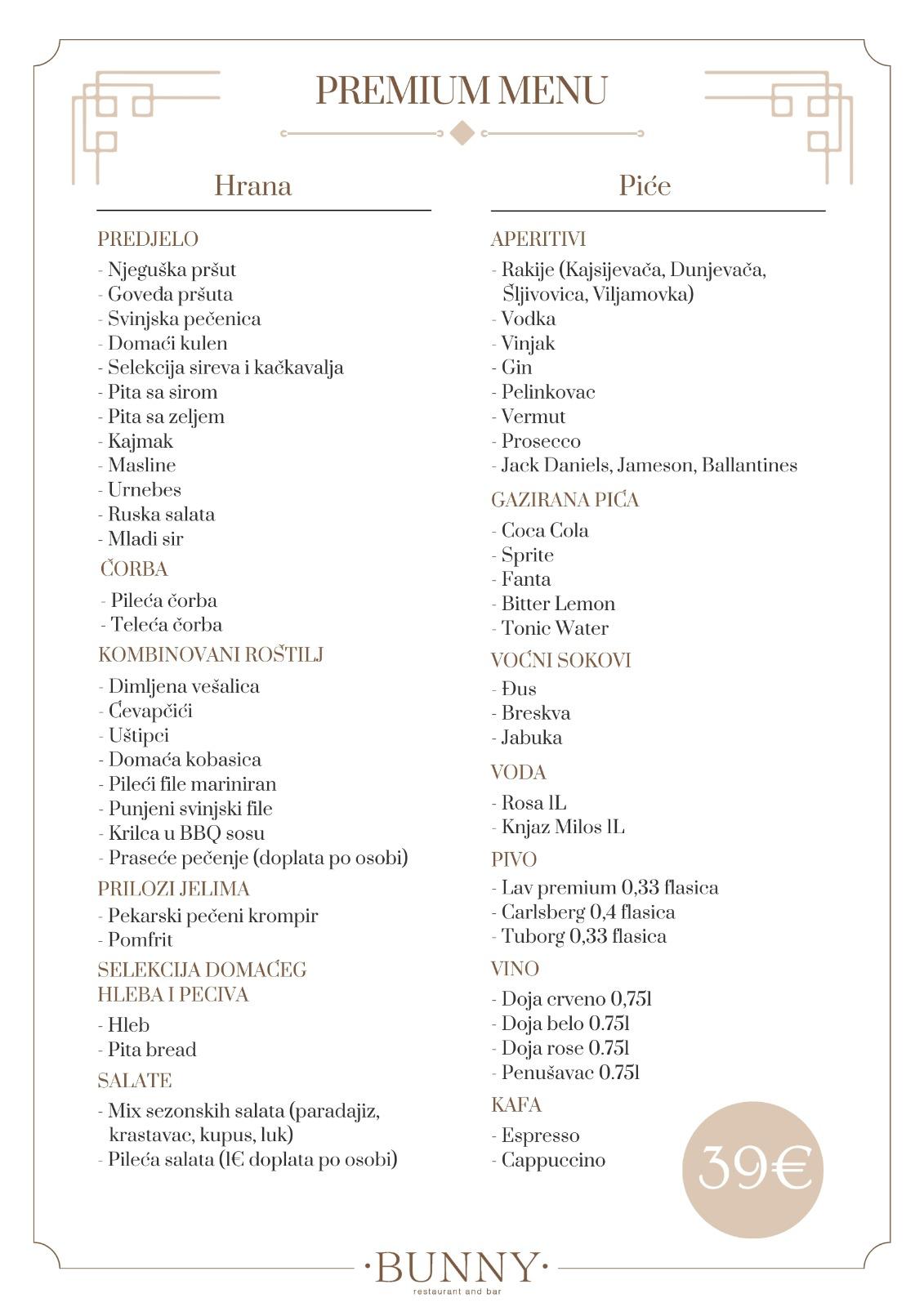 Uzivajte u savrsenoj atmosferi i izvanrednoj hrani dok slavite važne trenutke svog zivota. Bilo da planirate rodjendan, godišnjicu ili korporativnu proslavu, restoran Bunny nudi savršeno okruženje za svaki dogadjaj.