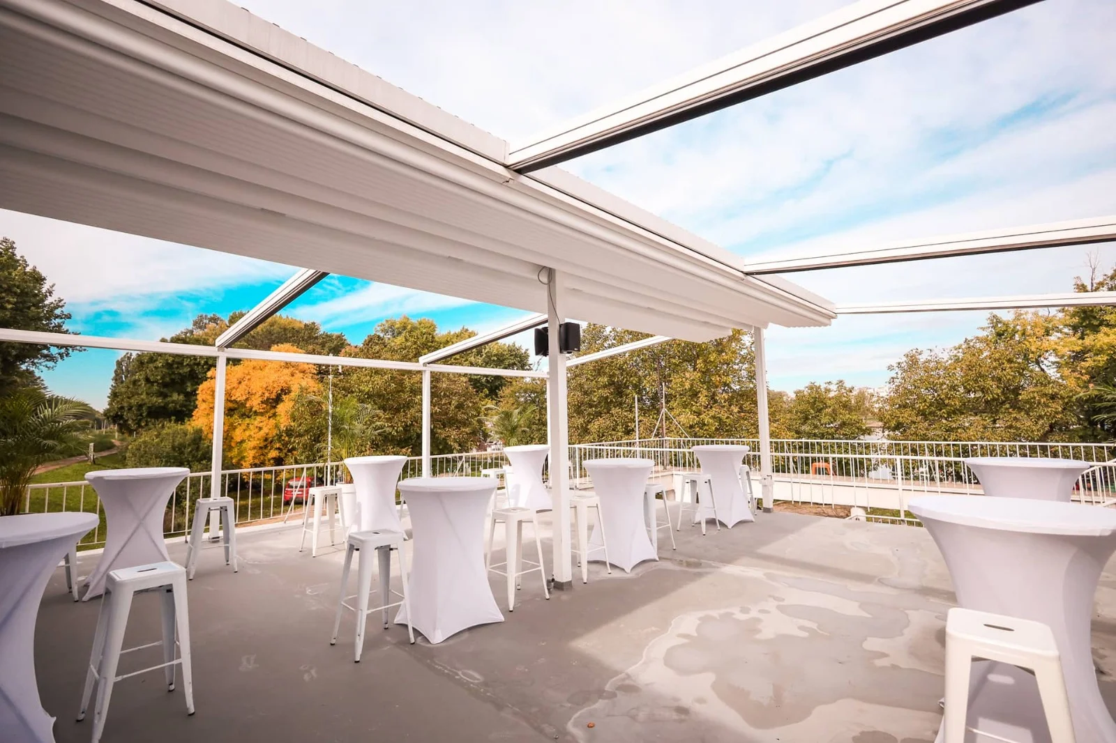 - Na spratu vas očekuje unikatni event prostor od 200m² sa modernim klubskim ambijentom i bajkovitim pogledom na reku, idealan za sve vrste proslava.